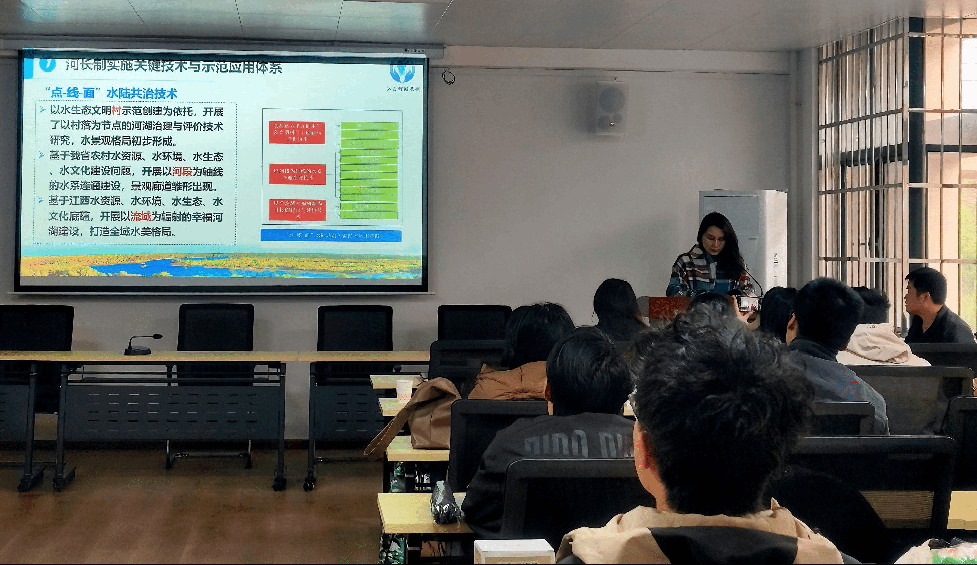 水利科普讲座。3月28日上午,江西省水利科学院水利规划与发展研究所室主任张兰婷高级工程师做“强化河湖长制为抓手建设幸福河湖”水利科普讲座。张兰婷结合个人工作经验,从江西省水生态文明村创建实践、水系连通治理技术与案例分析、幸福河湖建实施技术与案例进行了讲解。张兰婷的讲座以实例为主,数据充实、生动具体,大家受益匪浅。她希望,全体同学要倍加珍惜在校时间、强化理论学习、积极参加工程实践、不断提升业务本领,为建设秀美江西贡献自己的力量。