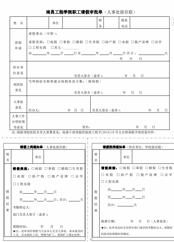 bwin必赢在线登入职工请假审批单(人事处留存联)